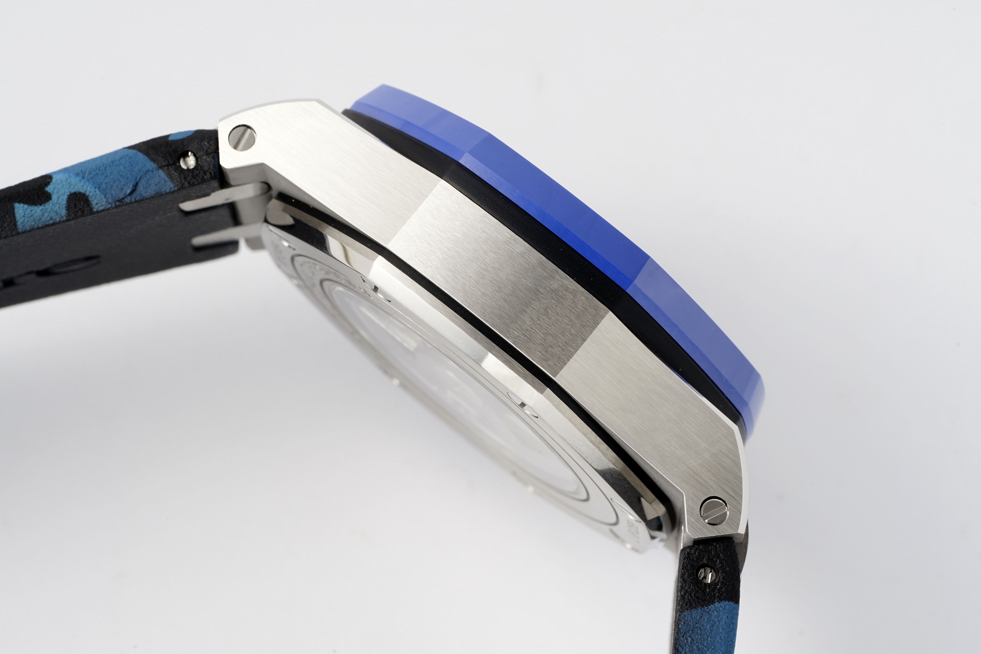 | Case Material: | Stainless steel complemented by a blue ceramic bezel |