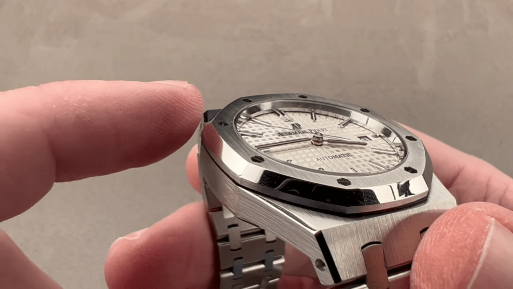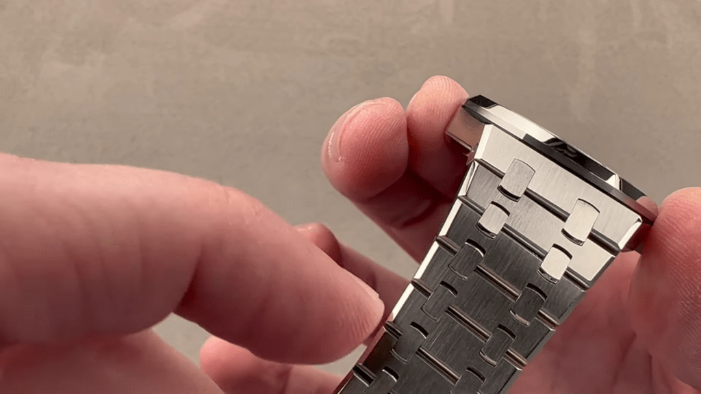 The screw system fixes it more securely, and unlike Patek Philippe which now uses pins and sleeves to fix its removable links, AP still makes these with screws even until the present days.